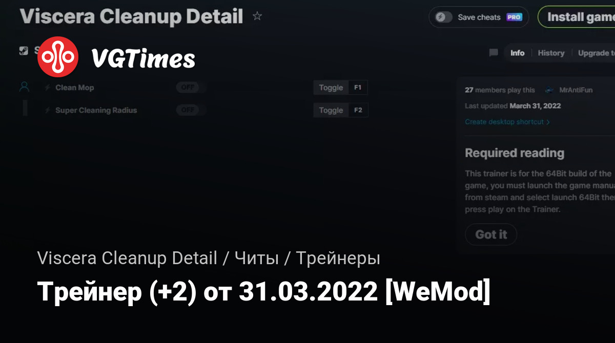 Для использования трейнера необходима установка системы WeMod (требуется онлайн подключение).