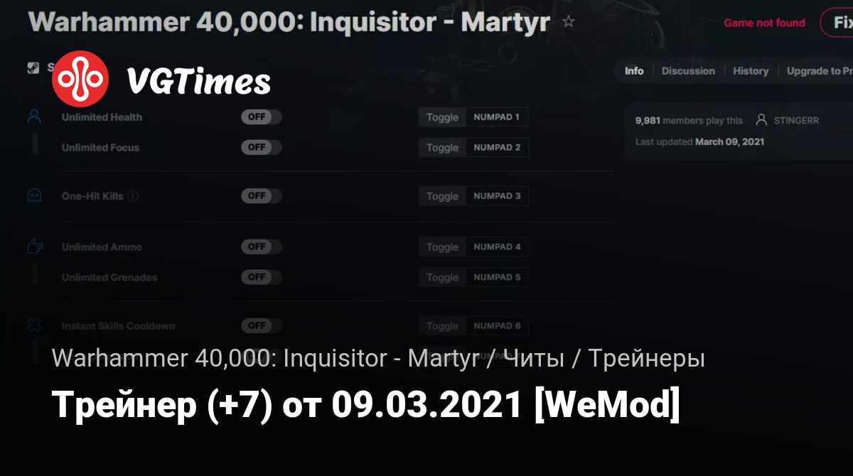• Warhammer 40,000: Inquisitor - Martyr — Трейнер (+7) от 09.03.2021 [WeMod]