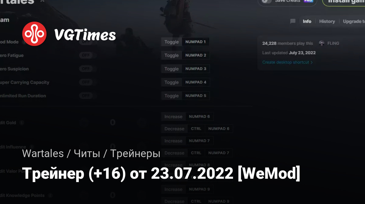 Трейнер (+16) от 23.07.2022 [WeMod]
