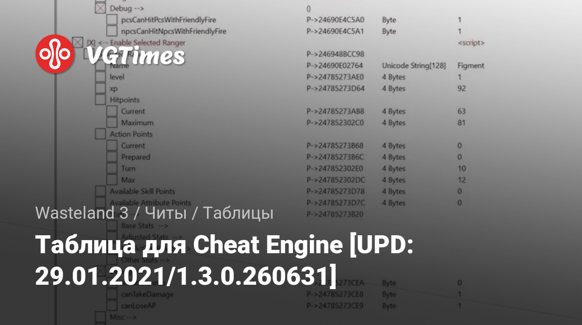 Таблица для Cheat Engine [UPD: 29.01.2021/1.3.0.260631]