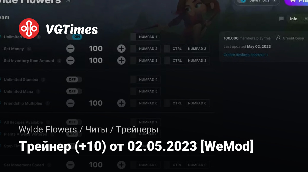 Для использования трейнера необходима установка системы WeMod (требуется онлайн подключение).