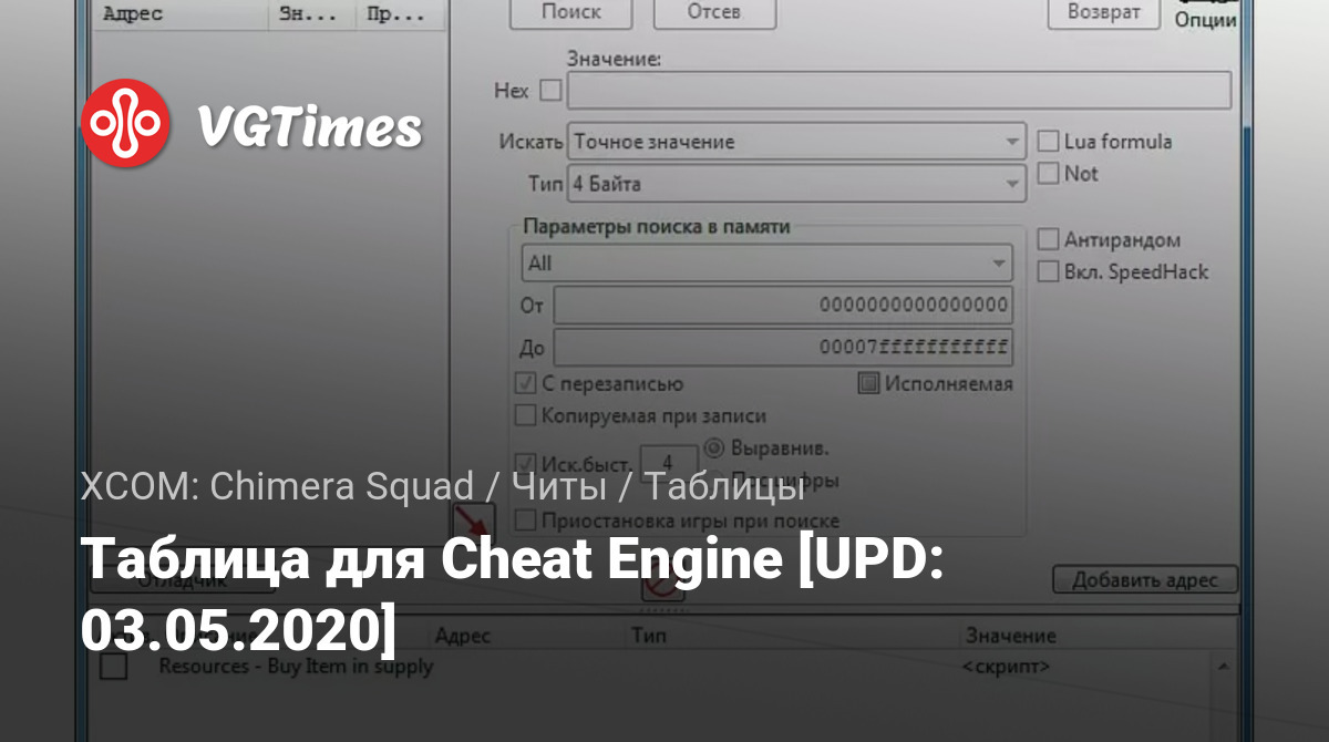 Таблица для Cheat Engine [UPD: 03.05.2020]