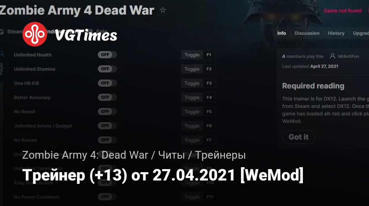 Трейнер (+13) от 27.04.2021 [WeMod]