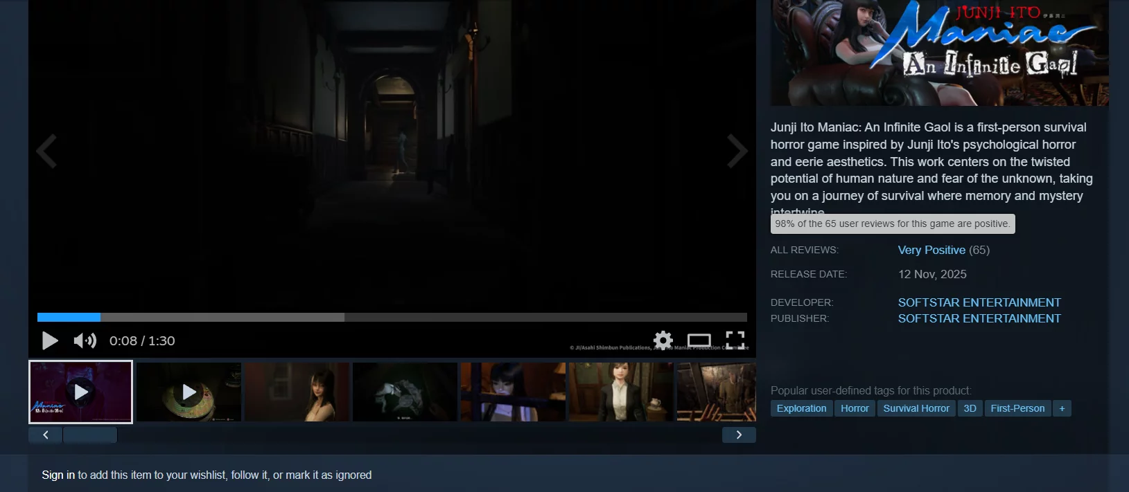 SOFTSTAR ENTERTAINMENT 发布了第一人称心理恐怖游戏 Junji Ito Maniac: An Infinite Gaol 在 Steam上。正如标题所示,这款游戏受到著名漫画艺术家伊藤润二作品的启发。