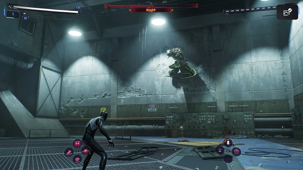 毒液和蜘蛛的能力也会有效,但网射和小工具几乎无用。此外,请注意带有电力标志的面板。如果在蜥蜴附近打开它们,您将使boss眩晕。之后,您将有机会进行一系列攻击。