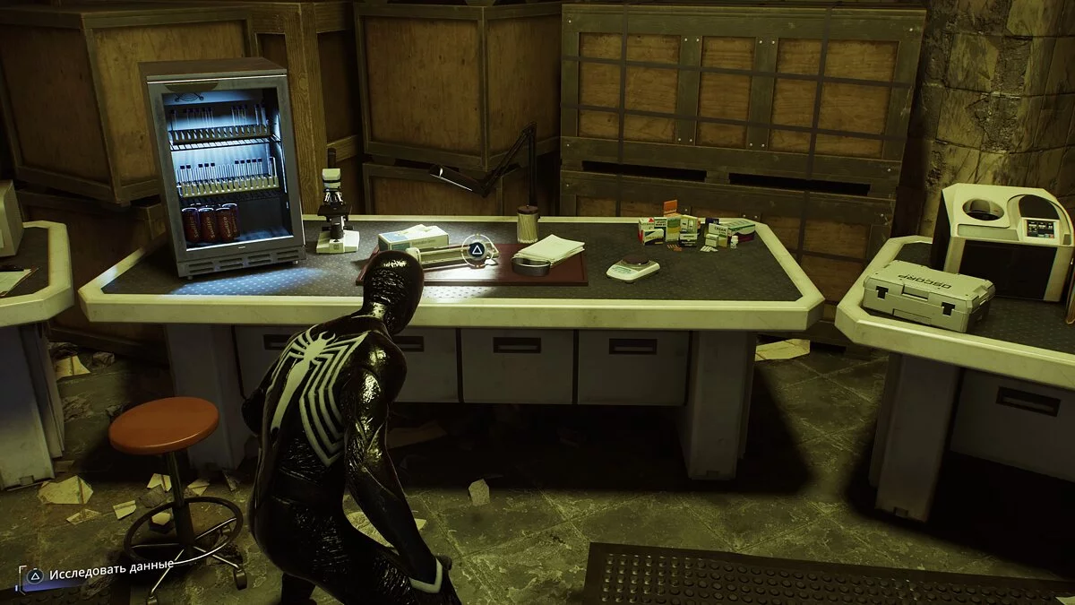 进入康纳斯的实验室。研究笔记、样本和工作站。