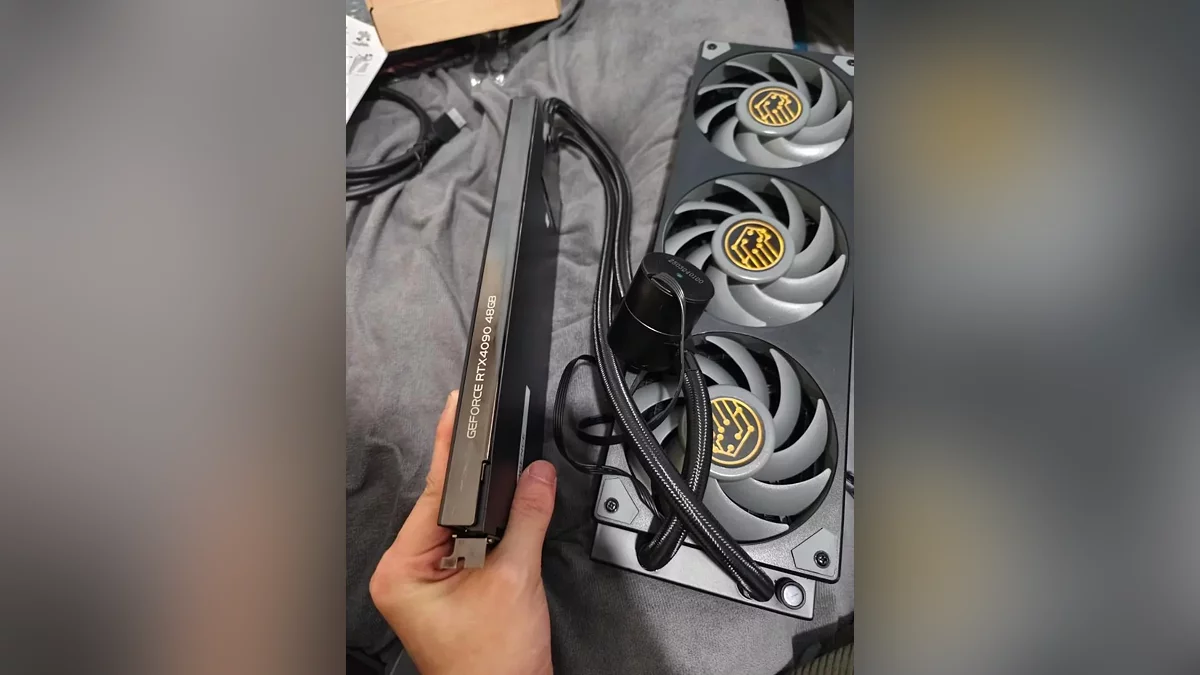 The cards, spotted on Reddit, feature a non-standard configuration: expanded 48 GB of GDDR6X memory, an AD102 chip, and a hybrid cooling system with three fans and a compact radiator. Interestingly, despite the doubled memory capacity, the memory bandwidth remains unchanged — the 384-bit bus and clock speeds are identical to the standard RTX 4090. GPU-Z confirmation has ruled out the possibility of a counterfeit, but the origin of these cards remains a mystery since NVIDIA has never announced an RTX 4090 with this configuration.