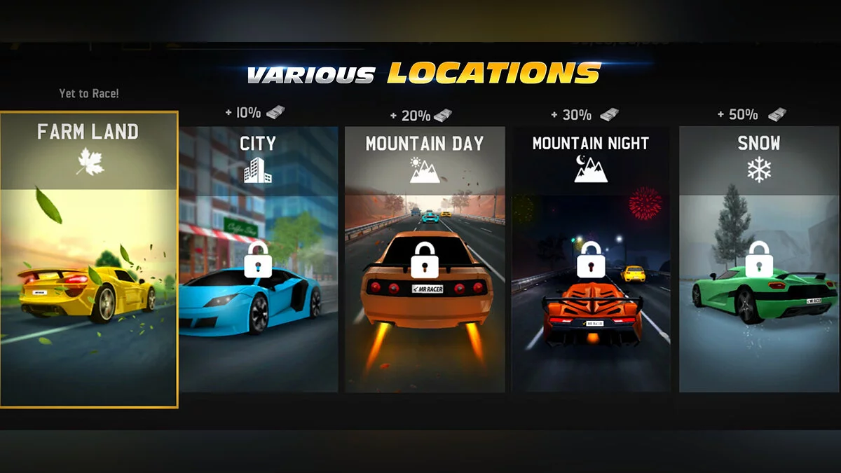 MR RACER: Premium于2022年发布,拥有15款超级跑车,7种模式——无限追逐、职业赛、在线多人、职业、无尽、计时赛和自由骑行——以及5个地点:农田、城市、白天山、夜晚山和雪地。得益于其离线模式,该游戏可以在没有互联网连接的情况下进行游戏。Epic Games Store赠送的高级版本包括Fancy Pack和500万单位的游戏内货币。它也没有广告。