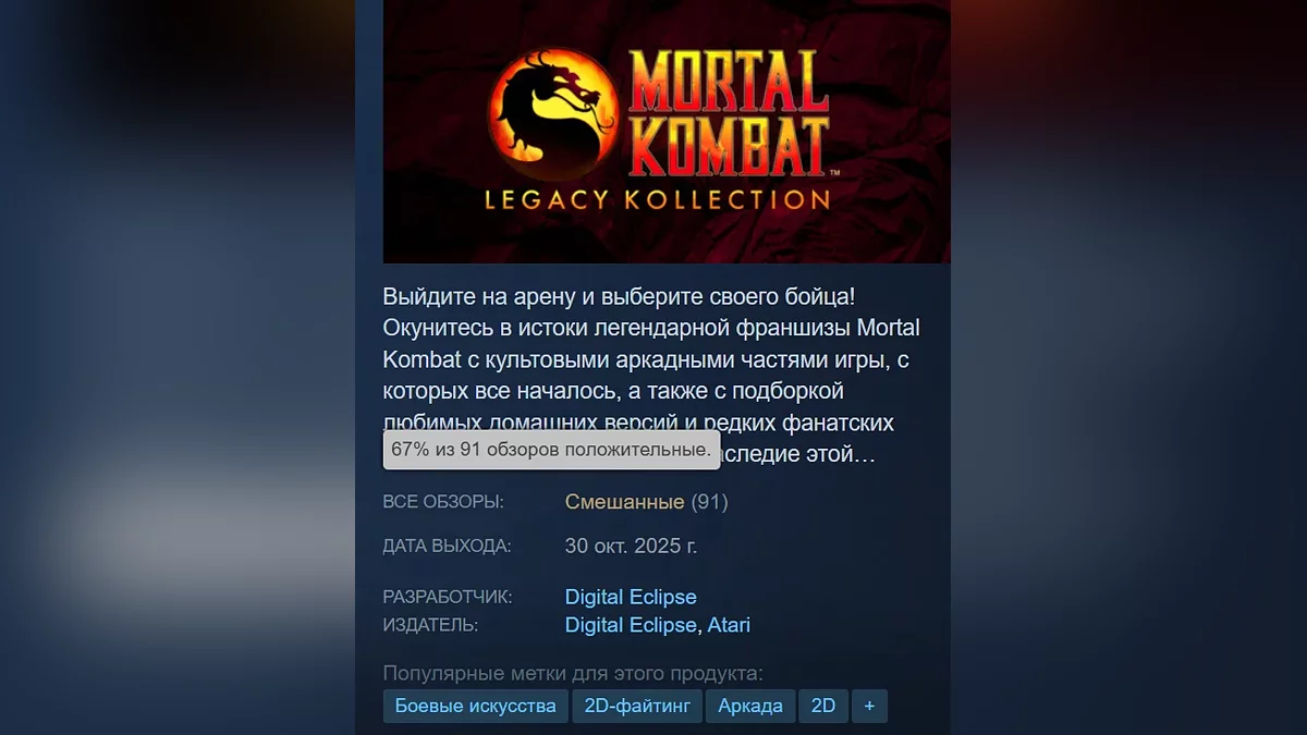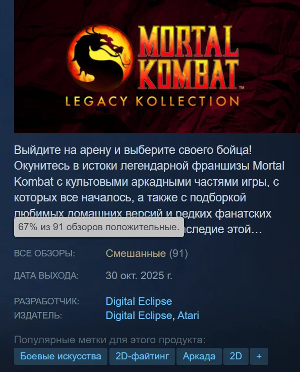 Mortal Kombat: Legacy Kollection 已正式在 PC 和主机上发布。该合集在 PC、PlayStation 4、PlayStation 5、Xbox One、Xbox Series X/S、Nintendo Switch 和 Nintendo Switch 2 上可用。